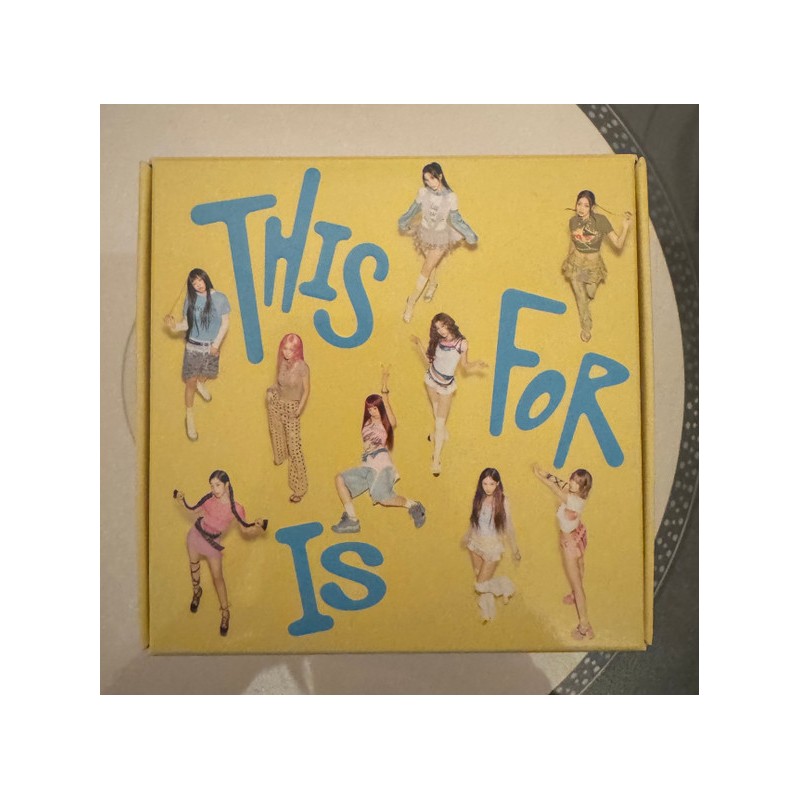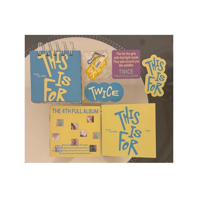 Tu grupo de chicas favorito, TWICE, un grupo único en un millón, vuelve con su cuarto álbum de estudio titulado «THIS IS FOR». Haciendo historia como el grupo de chicas que lo ha hecho todo y cumpliendo 10 años juntas, THIS IS FOR es un álbum de celebración para TWICE y ONCE. Disponible en versión CONFETTI. CONTENIDO: Mini CD, soporte para CD, minilibro (164 páginas), bandeja de salida, tarjeta fotográfica (1 de 9), llavero, póster plegado, pegatina (3 unidades), libro de letras (28 páginas).